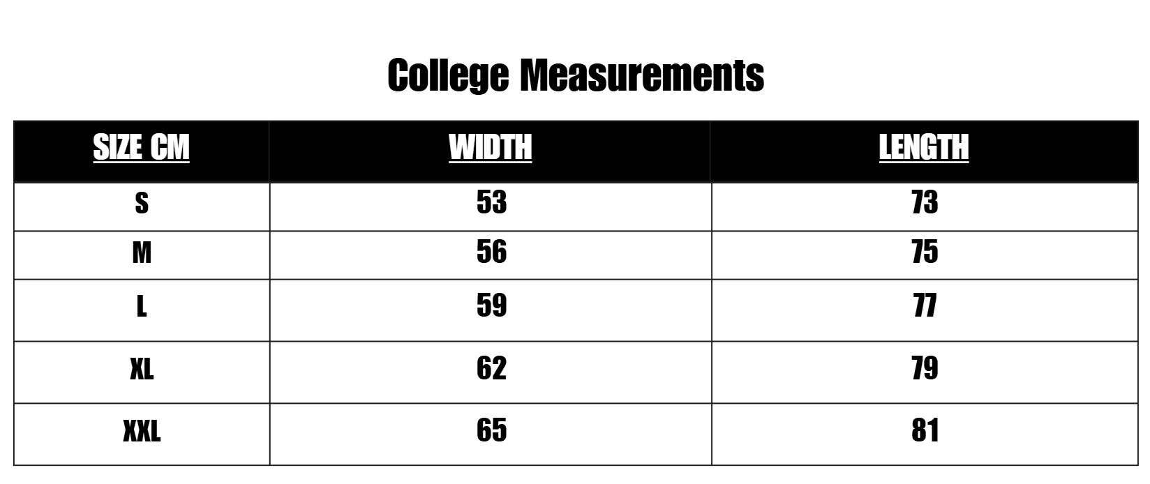 SIZE CHART